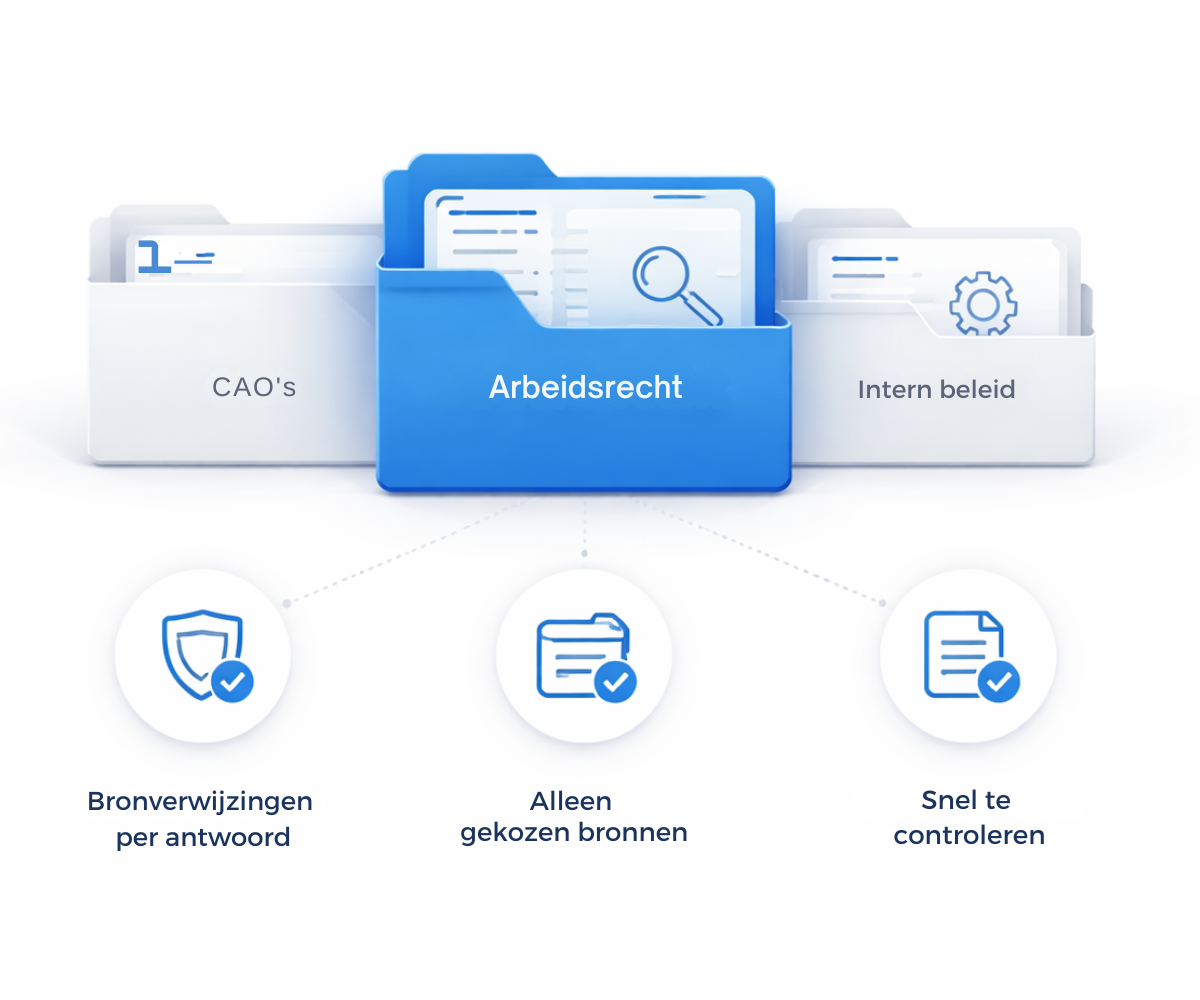 Daarom hebben we Slimme Dossiers gebouwd: je werkt met afgebakende dossiers, kiest zelf de bronnen en krijgt antwoorden met bronverwijzingen. Zo werk je sneller, zonder blind te vertrouwen op AI.